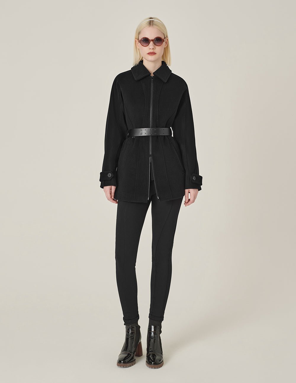 MARYLING’s small lapel silk wool jacket is woven with double-sided wool. It has a front zipper design and a slim waistline to highlight your figure. The classic black color presents a modern and modern charm.