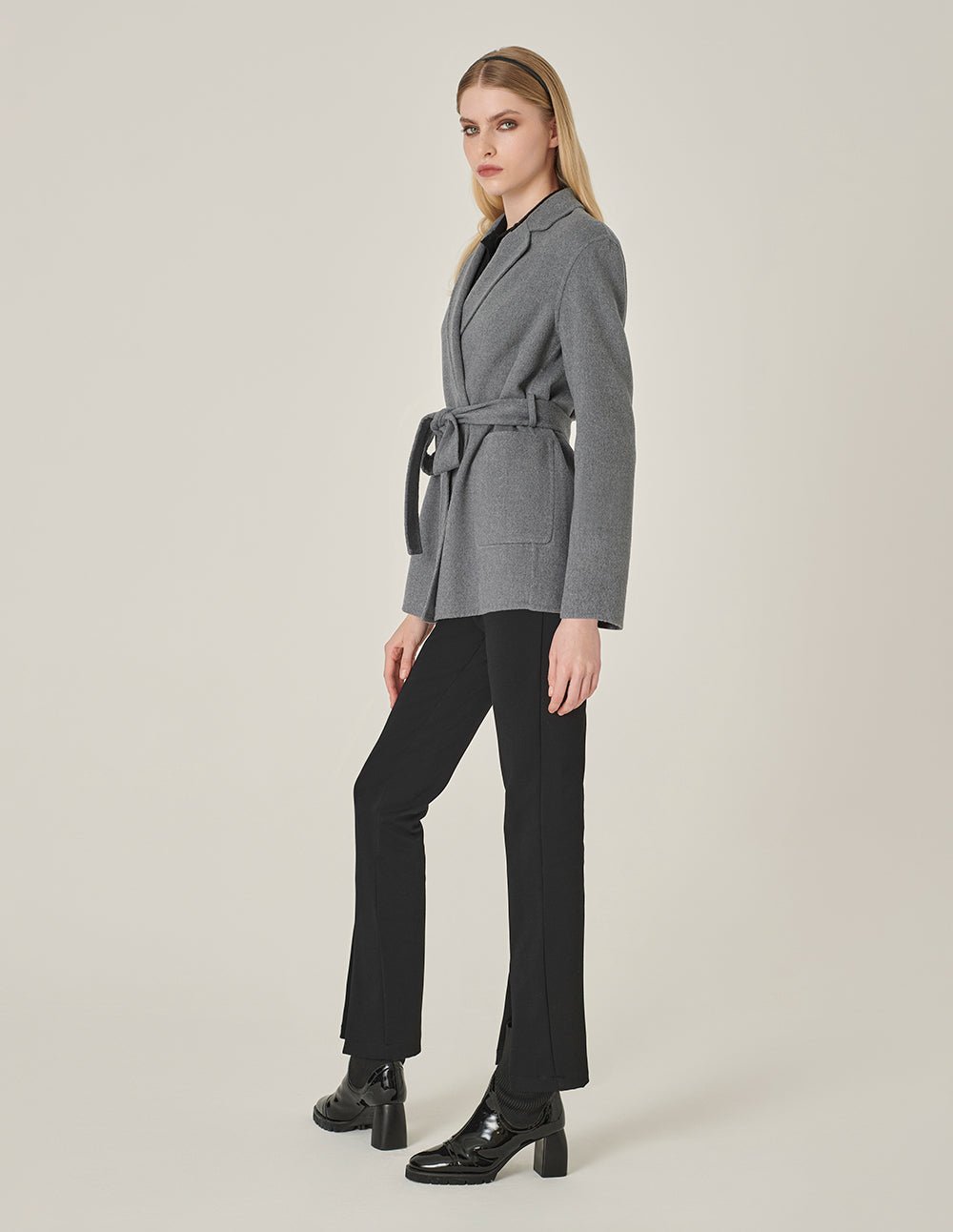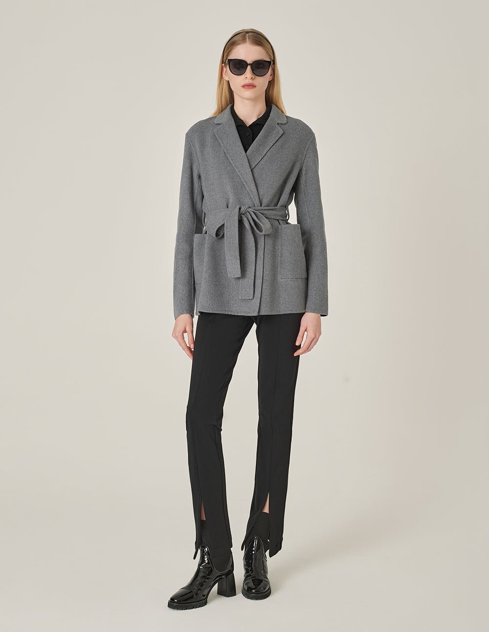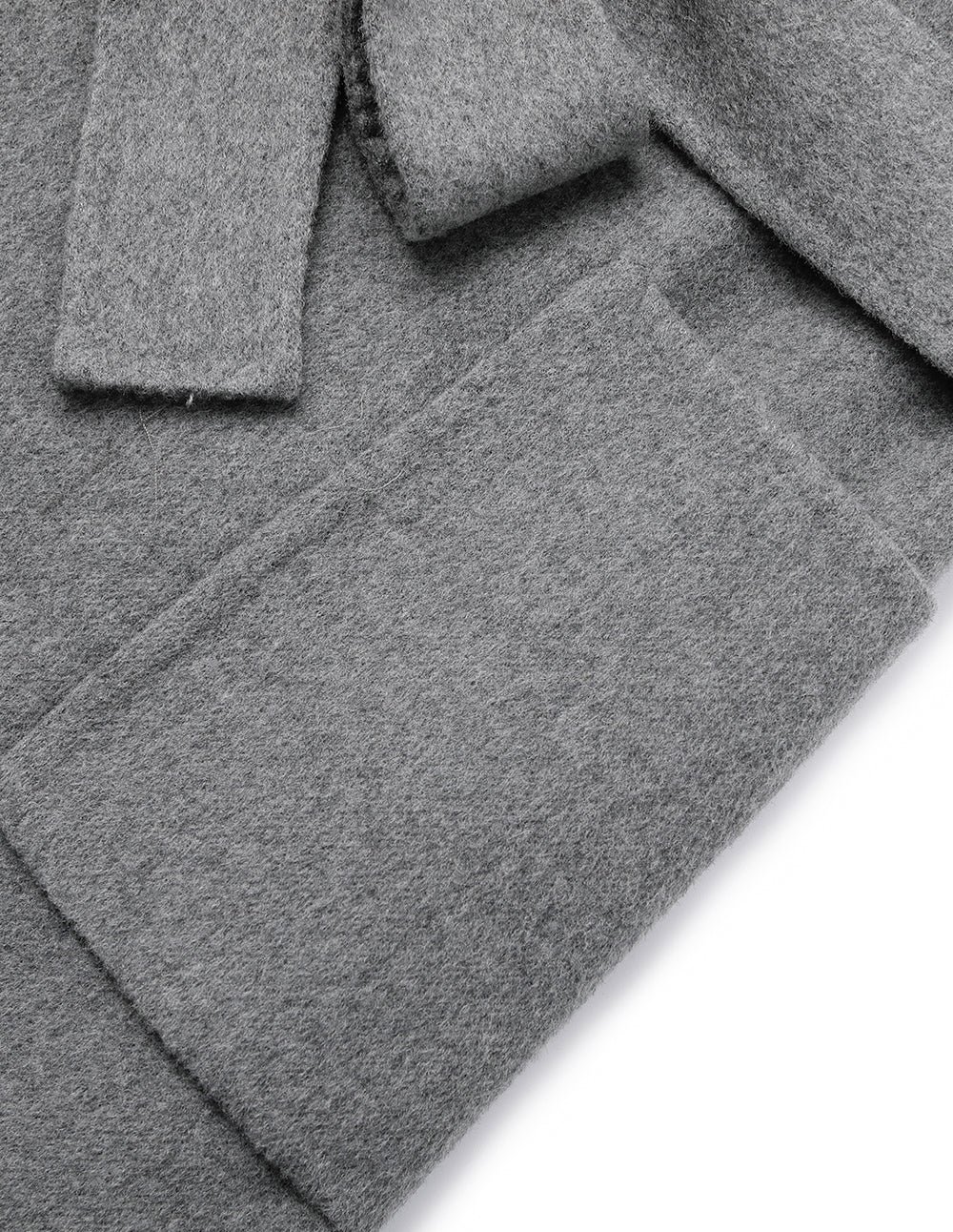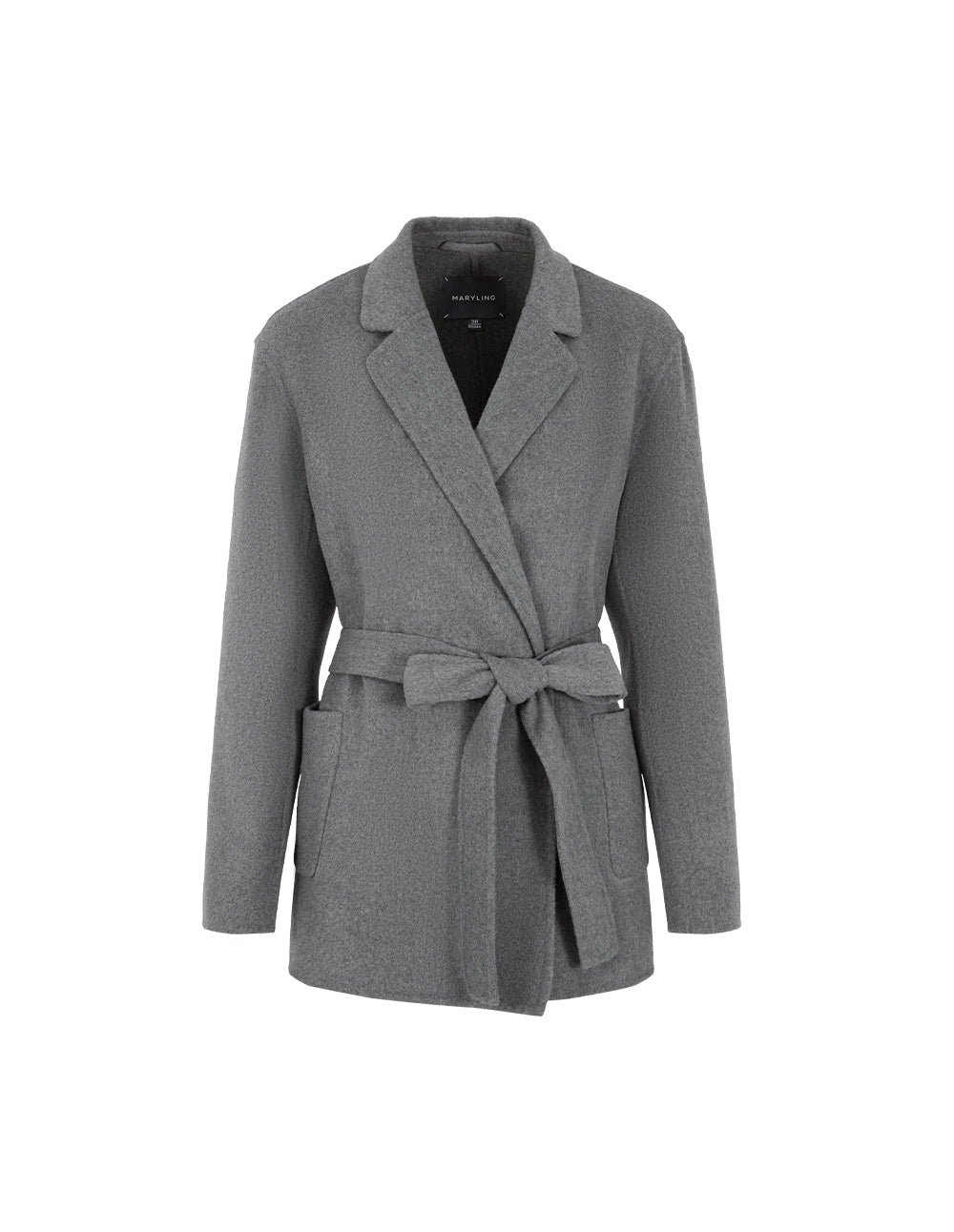 MARYLING’s draped silk wool coat has only pockets and other accessories throughout the body. The details of the straps add a casual and lazy style. The classic silk wool and dark gray double-sided fabric are low-key and noble. It feels warm and silky. It is a light. comfortable. and fashionable item.